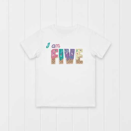 FIFTH Birthday T-Shirt – I Am 5 Ice Cream Waffle Cone Design