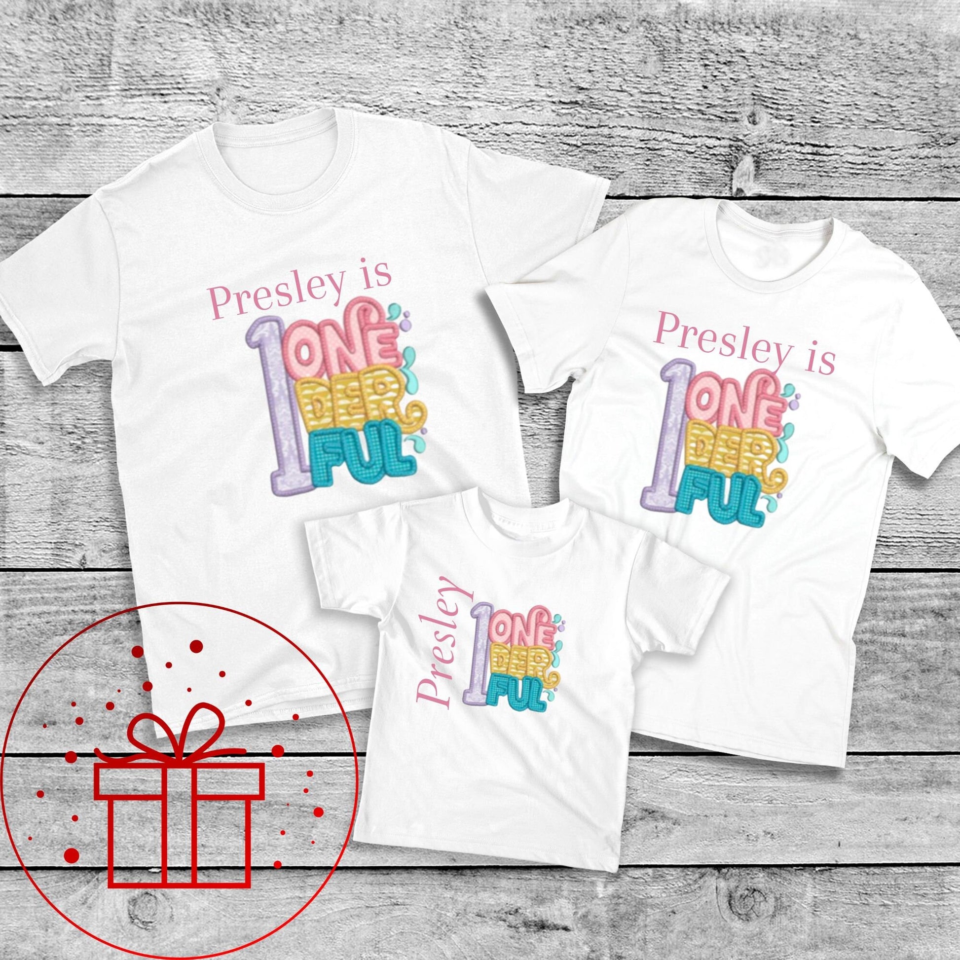 1st Birthday T-shirt, one-der-ful, First, I am One, One, fun age specific writing, kids & family matching styles. Shirts and hoodies