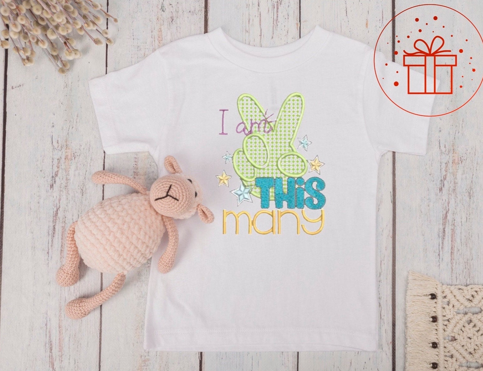 2nd Birthday T-shirt, I am this many, second, I am Two, Two, fun age specific writing, kids & family matching styles. Shirts and hoodies