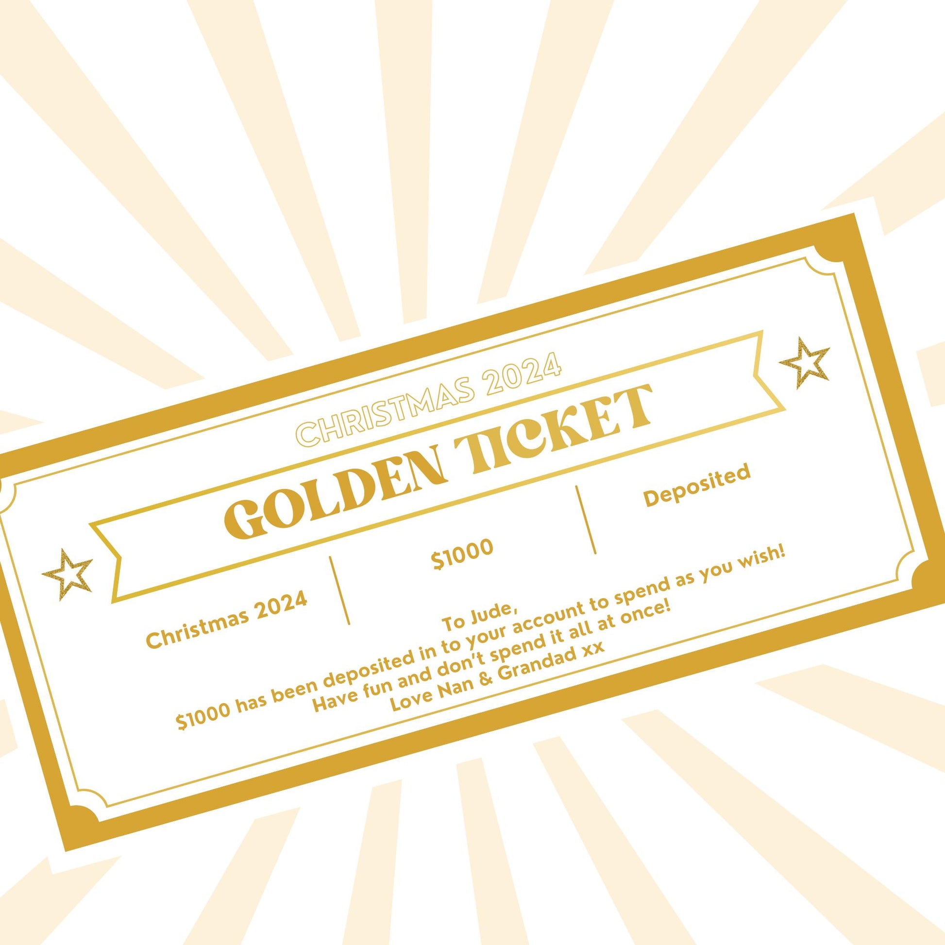 Looking for the ultimate surprise gift? Whether youâre giving a promise, an experience, or something that canât be physically handed over, our Golden Ticket is a delightful keepsake that will make any occasion unforgettable. Ideal for birthdays, holidays, special celebrations, or just because. This beautifully foil crafted voucher can be cherished forever you could frame your voucher or added it to the memory box.