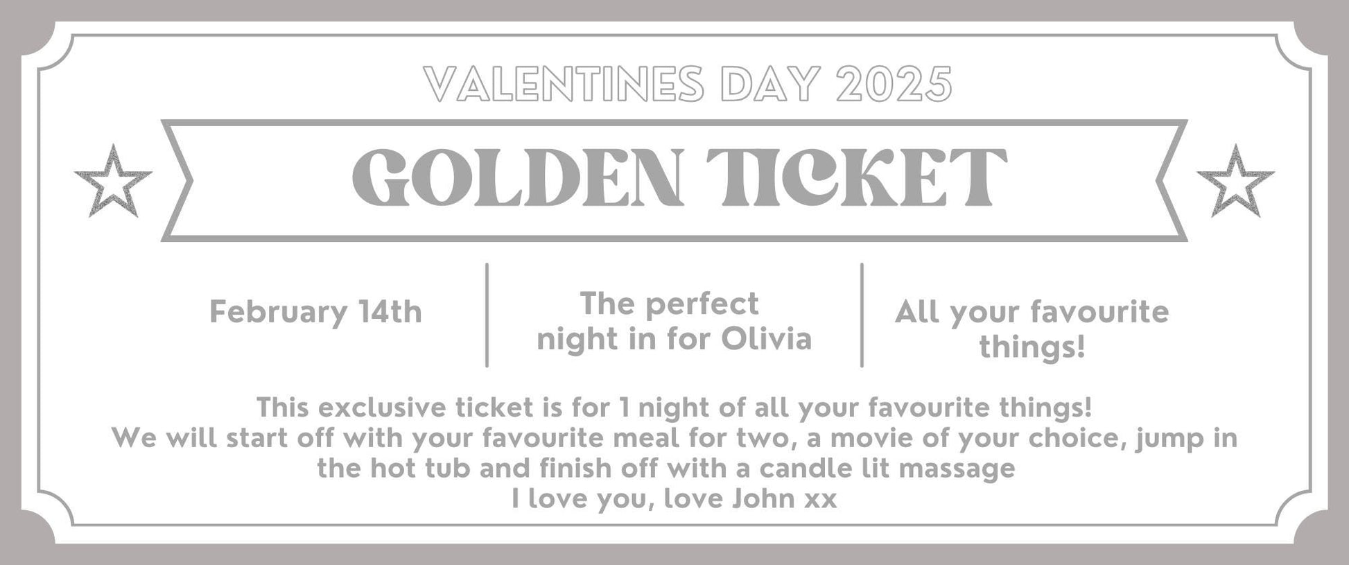 Looking for the ultimate surprise gift? Whether youâre giving a promise, an experience, or something that canât be physically handed over, our Golden Ticket is a delightful keepsake that will make any occasion unforgettable. Ideal for Fatherâs Day, birthdays, holidays, special celebrations, or just because. This beautifully foil crafted voucher can be cherished forever you could frame your voucher or added it to the memory box.