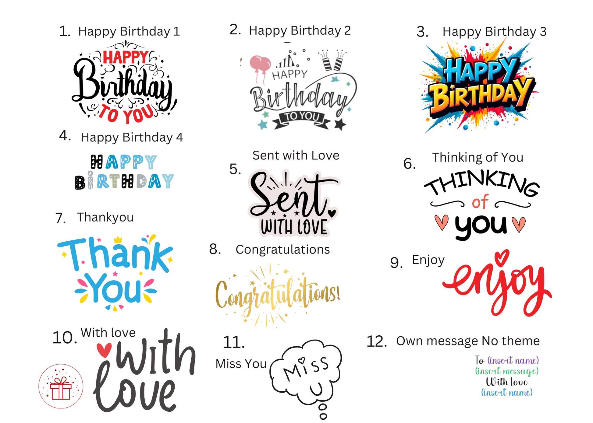 On some occasions we are not able to supply the exact items as pictured or described in our product descriptions. Colours, flavours and even brands may vary but we guarantee that we will include/replace items with a like for like alternative and they will always be of the same or higher quality and value and your gift will still look and be amazing.