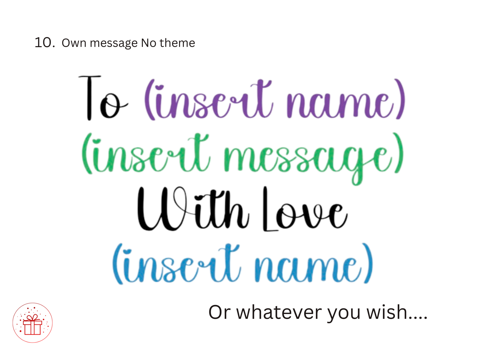 Personalised message along side your chosen image on the outside of your hamper and the same image on the inside of your hamper so it will look great open or closed as a centre piece for a party to to hand out your trick or treat lollies