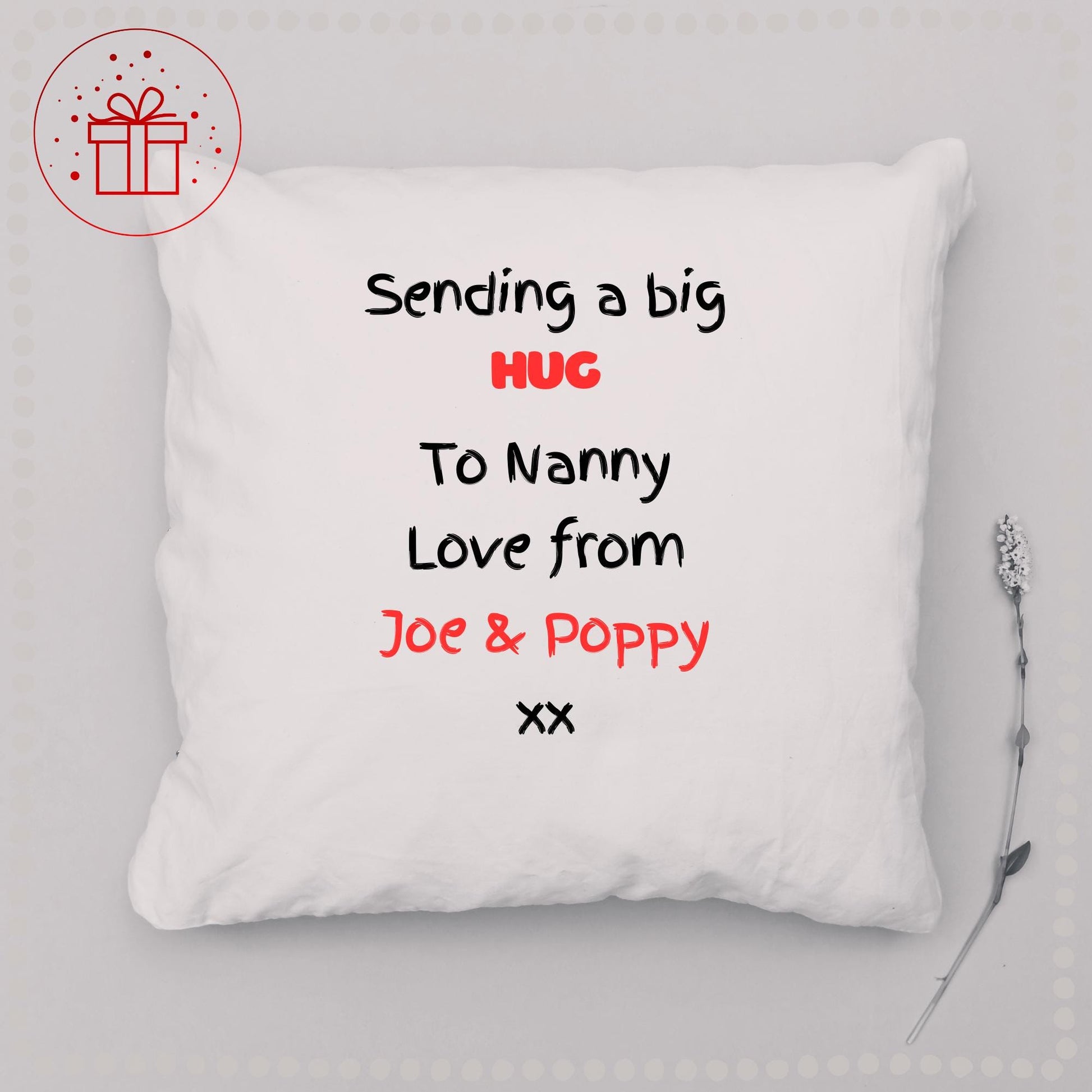 These personalised cushions are truly beautiful and perfect to sit on your lounge or on a bed. This listing does not include the cushion insert and is for a cover only. Cushion covers are 50x50 cm in size so quite large. The cover is a cream linen colour and writing is black and red - the name and from names can be any colour you wish - just add this information in the personalisation section (if no preference is given the writing will be done as per the image with your personalisations being red and the rest of the writing in black. Please note image above is of a smaller cushion, on a 50x50 cushion your writing will be in the middle of the cushion not fill the cushion quite as much as in this image.