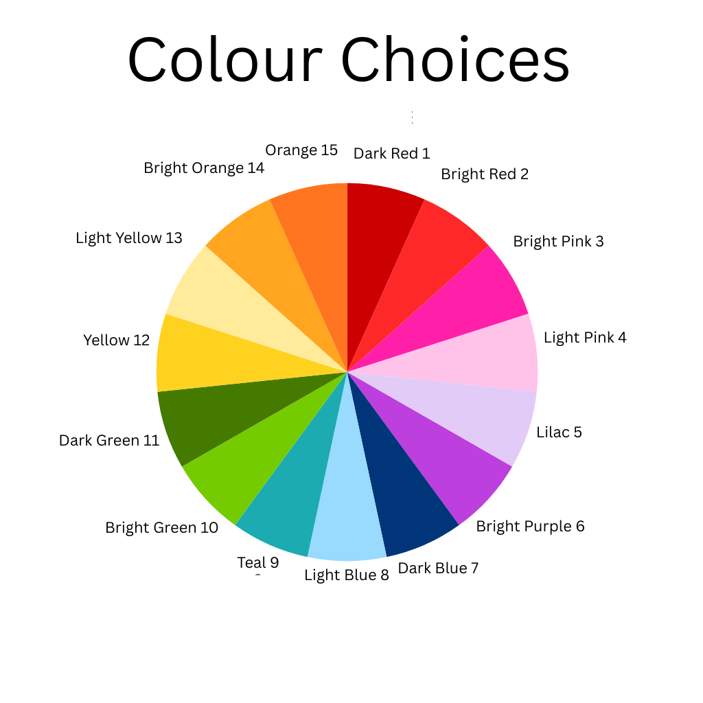 Leave colour preferences in the personalisation box or send us a message immediately after ordering.