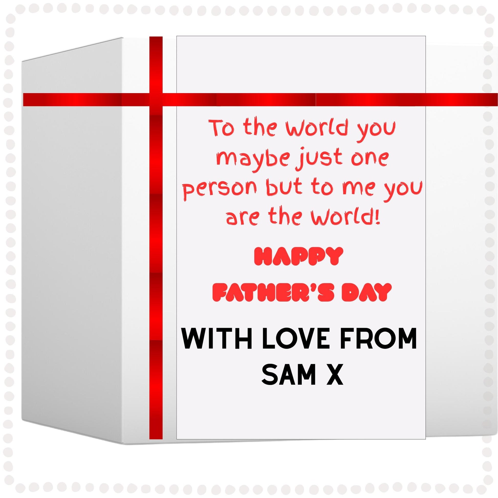Tell us your preferred Fathers Day image and your personal message to the lucky recipient and we will personalise your hamper to suit. There are numerous designs to choose from and if you don‘t see one that you like get in touch and we will custom make one for you.